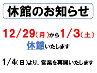 年末年始休館日のお知らせ